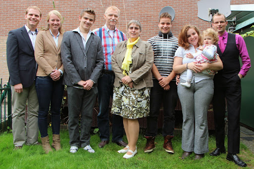Op de voorste rij: Tjalling van Slooten, Aukje Boorsma, Fokje van der Heide en Taeke van Slooten.